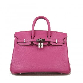 Hermes Birkin 25cm Clemence Leather Bag Orchid with Platinum HW