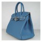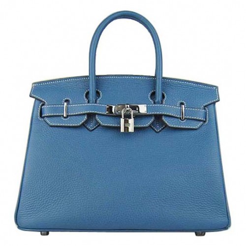 Hermes Birkin 30cm Clemence Leather Bag Blue Jeans with Platinum HW