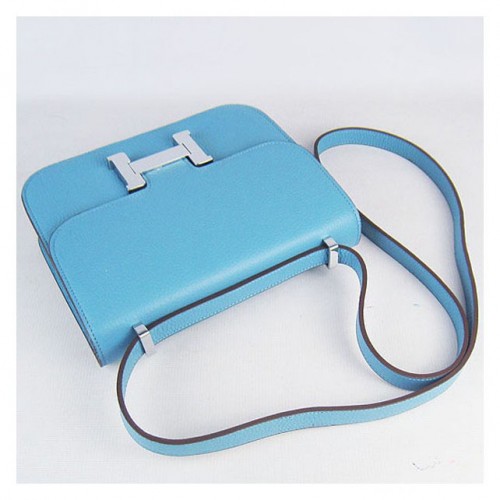 Constance should bag is Hermes s creation, which is well designed by our own designer, the material of the bag is calf leather, the color is light blue with size W19 x H23 x D6cm. the Hermes constance light blue bag is designed as the same as the authentic ones.